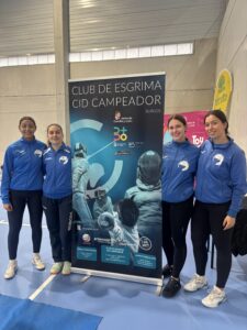 Equipos primera división de oro Flavia Pérez, Sara González, Belén Pedrosa y Inés Acedo Contra el Sala de Armas de Montjuic 45/31, contra la Sala de Armas de Madrid 33/45 y contra el club de esgrima Pozuelo 26/45